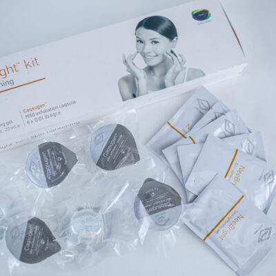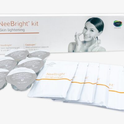 The NeeBright Skin Lightening Kit is a professional skincare system designed to brighten the skin and improve overall complexion. It combines gentle exfoliation capsules with a skin lightening gel to remove dead skin cells and enhance skin radiance.