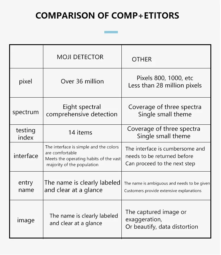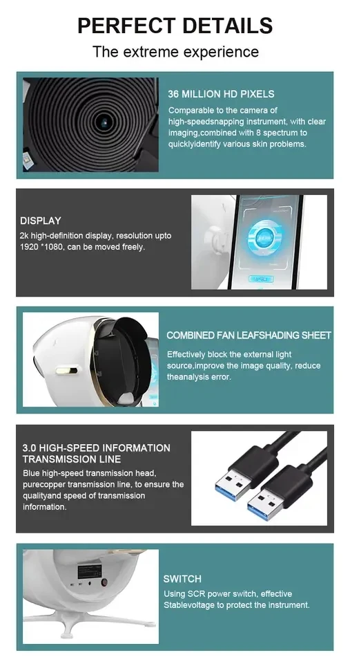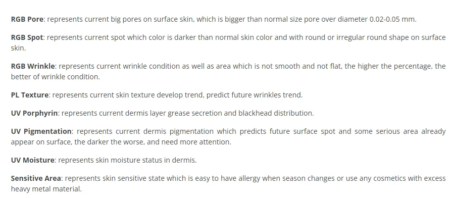 - Detects acne, wrinkles, pigmentation, and moisture levels