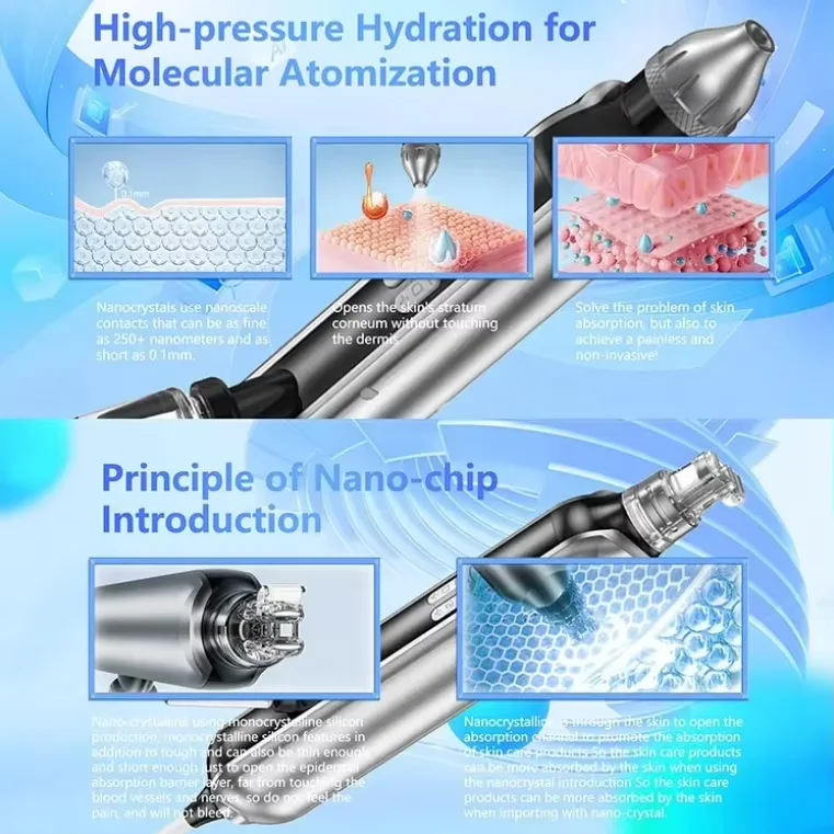 Using innovative dermabrasion technology, this device combines multiple functions including exfoliation, cleansing, oxygen infusion, and nutrient delivery to remove impurities, dead skin cells, and excess oil while promoting smoother, fresher, and more radiant skin.