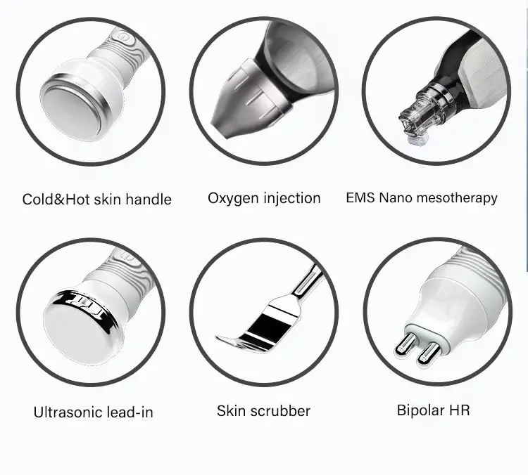 مزود بوظائف إضافية مثل الأوكسجين، RF شد البشرة، العلاج بالضوء LED، والموجات فوق الصوتية لنتائج فورية وآمنة.