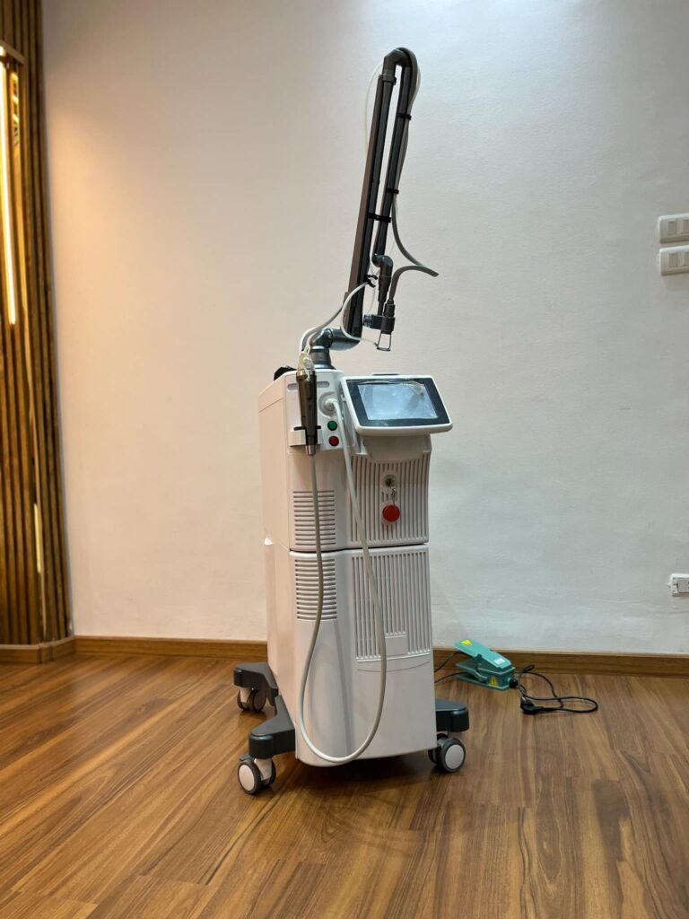 Professional CO2 Laser & RF Microneedling Machine designed for advanced skin resurfacing, wrinkle reduction, scar treatment, and collagen stimulation using dual laser and radiofrequency microneedling technology.