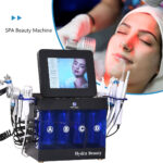 The hydrodermabrasion system works by exfoliating the skin’s surface and cleansing pores deeply, preparing the skin to absorb active serums more effectively. It improves microcirculation, enhances texture, and supports overall skin renewal.