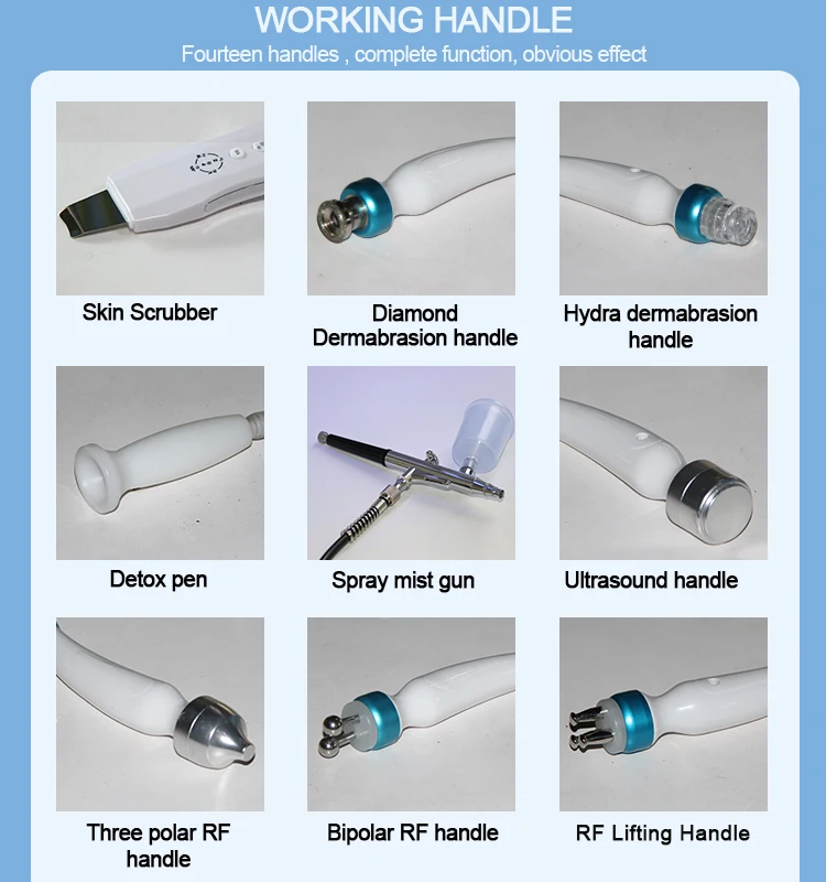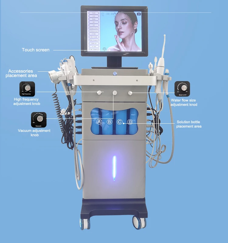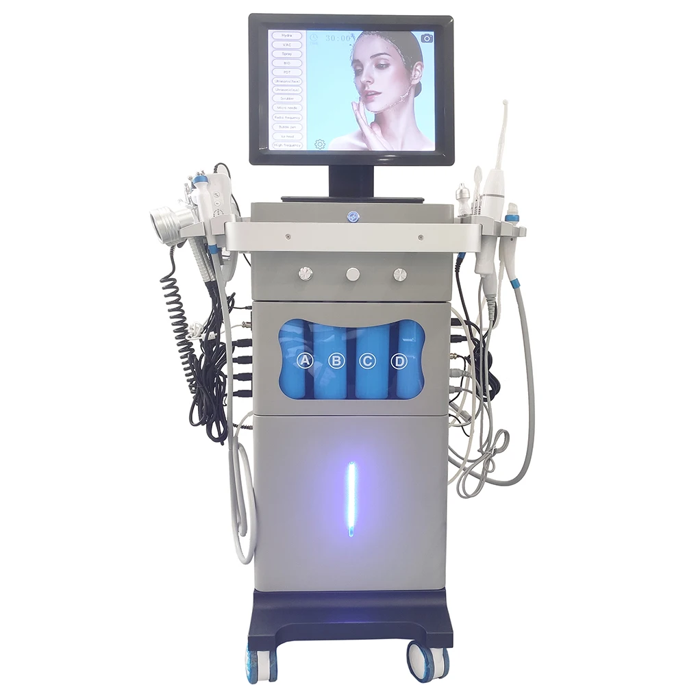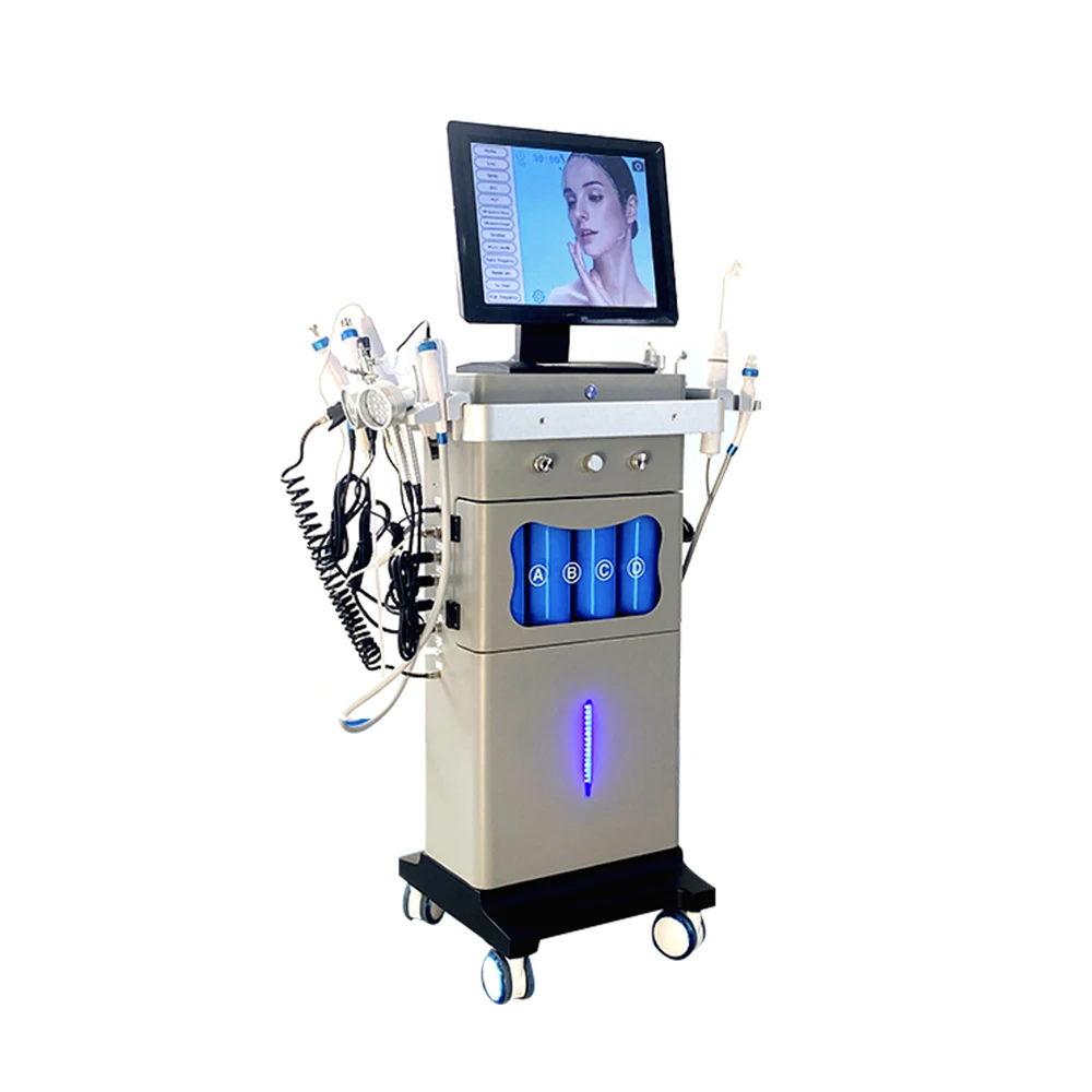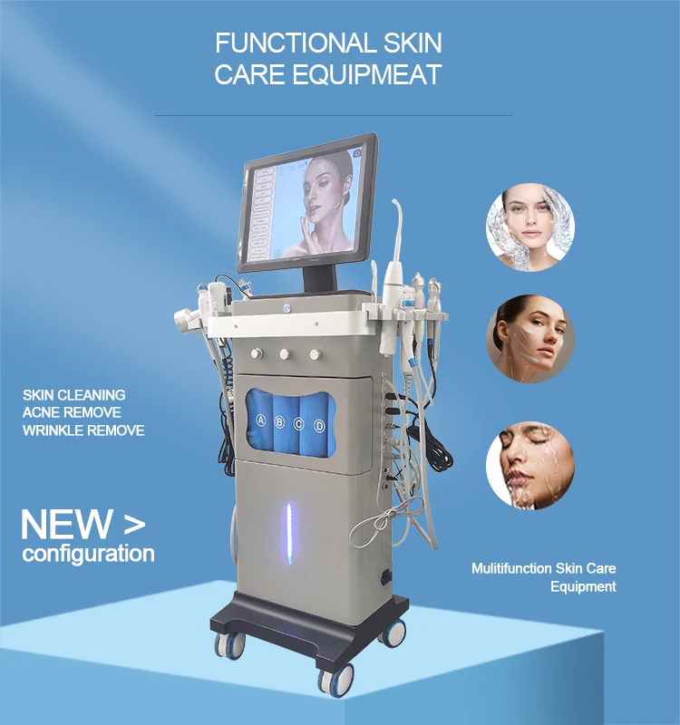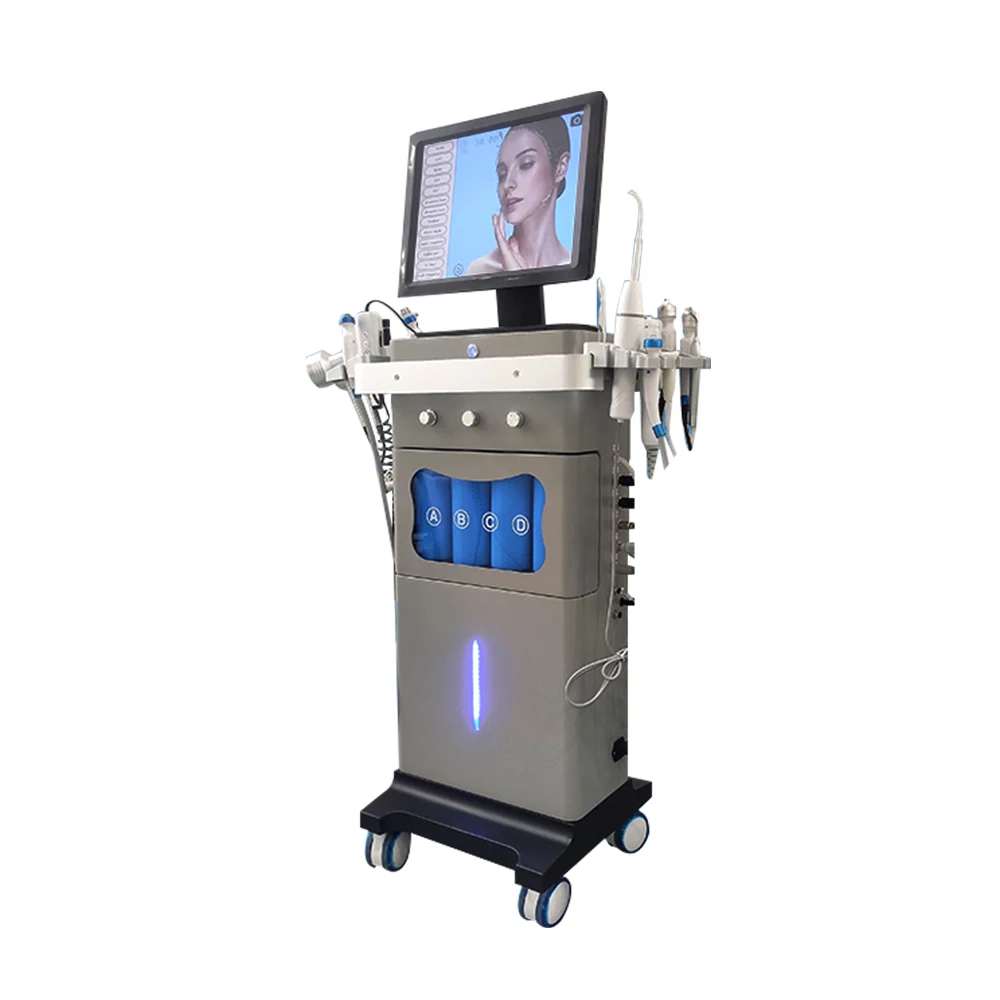 جهاز العناية بالبشرة الاحترافي 15 في 1 يجمع بين أقوى تقنيات تجديد البشرة والعلاج المتكامل. مزود بـ 15 أداة مختلفة تشمل تنظيف عميق، تقشير ألماسي، أكسجين، فراكشنال، RF، ومطرقة باردة. شاشة لمس ذكية تسهل التحكم الكامل. مناسب للاستخدام في العيادات والمراكز الطبية.