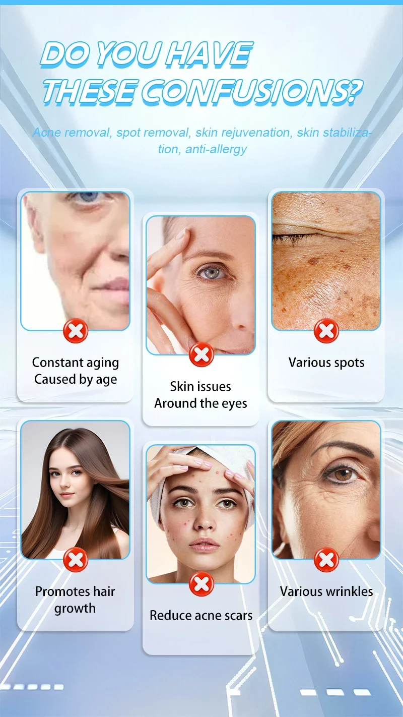 - Proceed through cleansing, exfoliation, tightening, and hydration stages