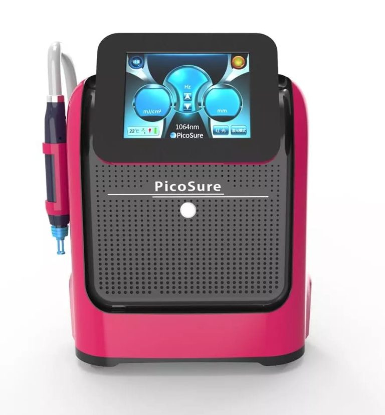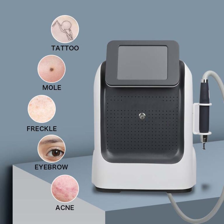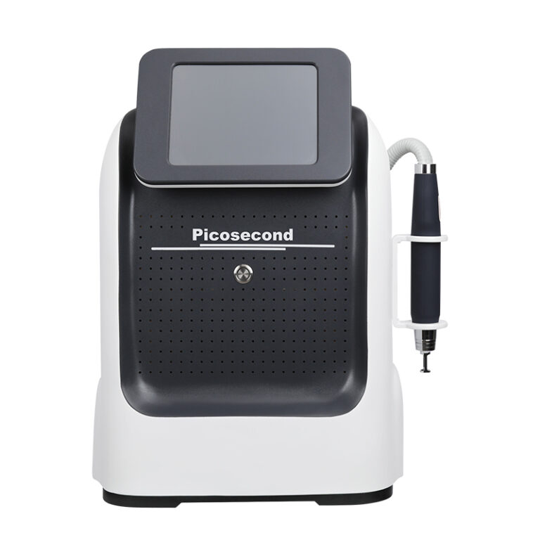 Professional portable picosecond Q-Switched laser machine for tattoo removal, pigmentation reduction, and skin rejuvenation using advanced pico and diode laser technology.